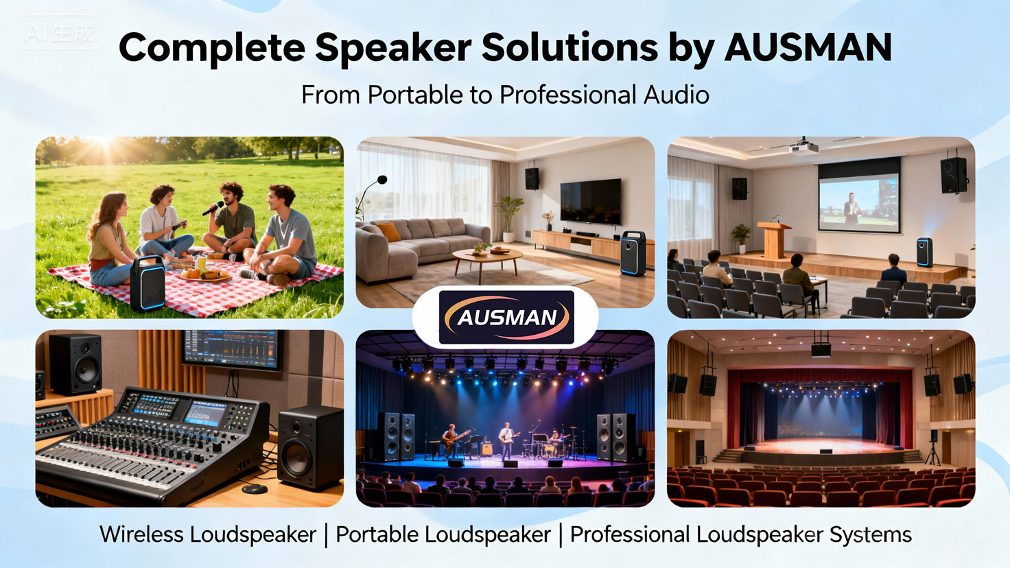 الاستخدامات الشائعة: التجمعات المدرسية، والمؤتمرات المؤسسية، والفعاليات المجتمعية، والعروض الحية. على سبيل المثال، صُممت مكبرات صوت نظام الصوت العام من AUSMAN بمشغلات عالية الحساسية (أكثر من ١٠٠ ديسيبل) لتغطية مساحات تصل إلى ٥٠٠ متر مربع، مما يجعلها مثالية للأماكن الصغيرة والمتوسطة الحجم.